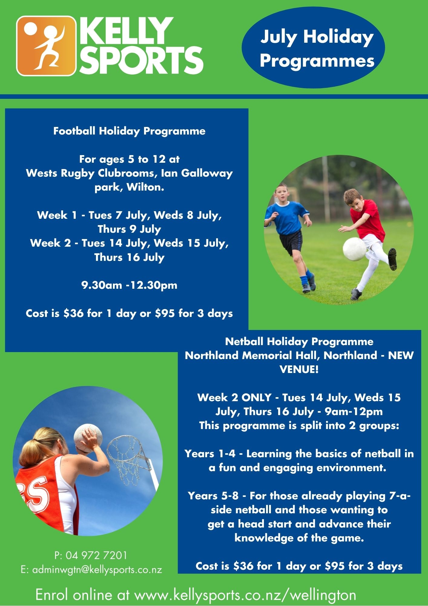 For full details and to enrol into our programmes visit www.kellysports.co.nz email adminwgtn@kellysports.co.nz or call 04 972 7201.