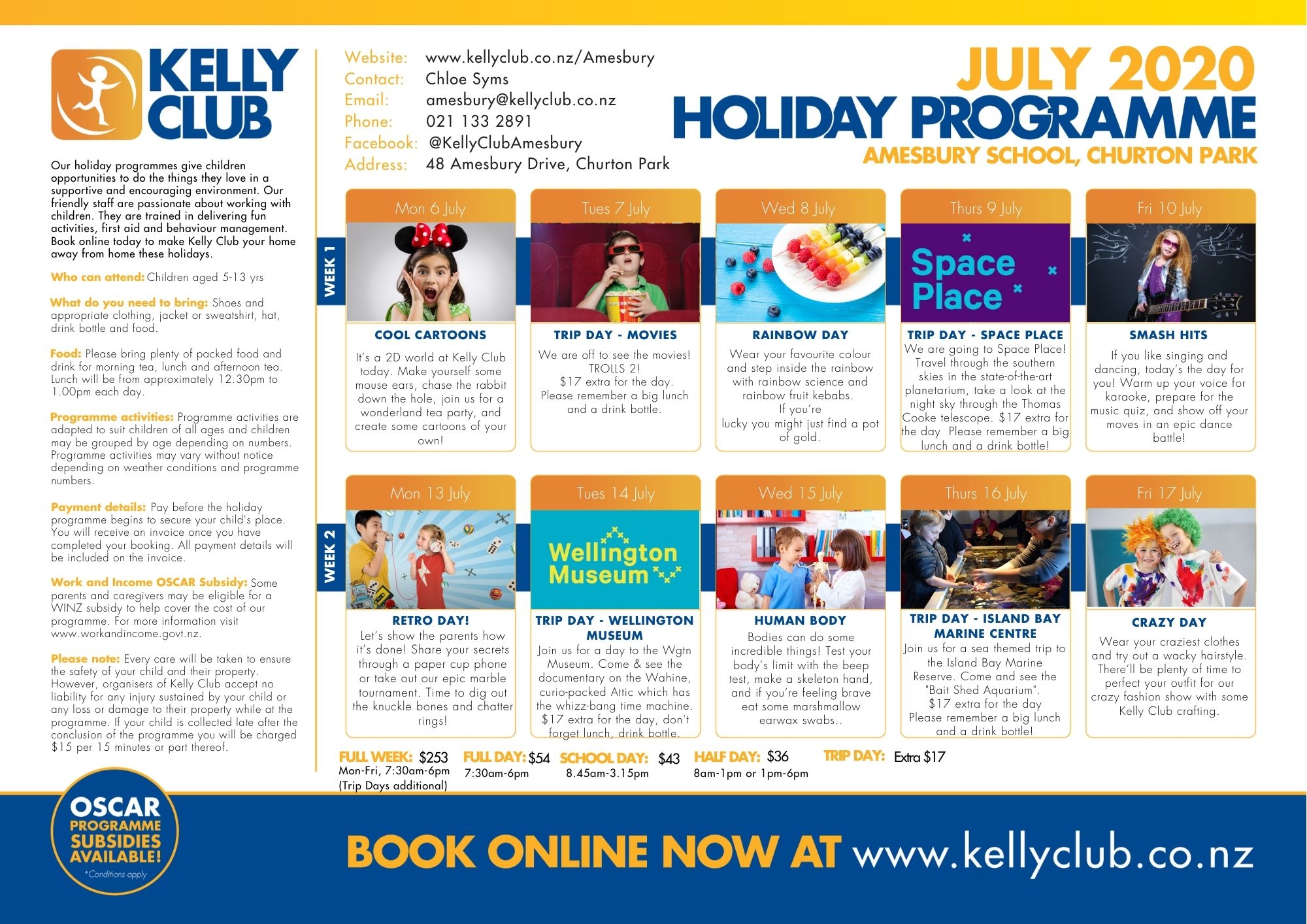 To enrol www.kellyclub.co.nz, email amesbury@kellyclub.co.nz or ph. 021 133 2891