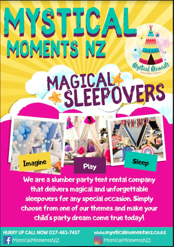 Mystical Moments NZ, a themed Teepee Party setup, which families hire to celebrate birthdays and occasions by having unforgettable sleepovers for their kids.