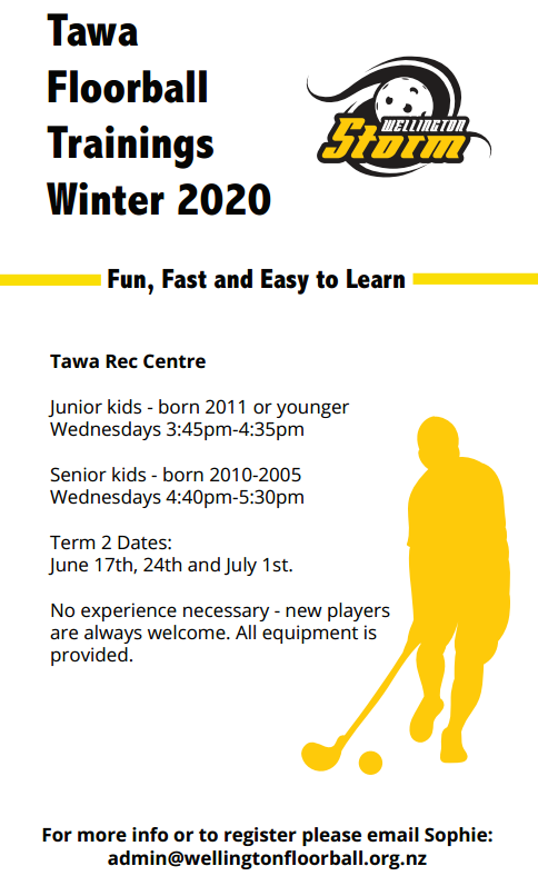 $10 Term 2If you are keen to have a free trial session, please email Sophie: admin@wellingtonfloorball.org.nz , or register now with this link: https://membership.sportstg.com/regoform.cgi?eventID=8832&formID=94378