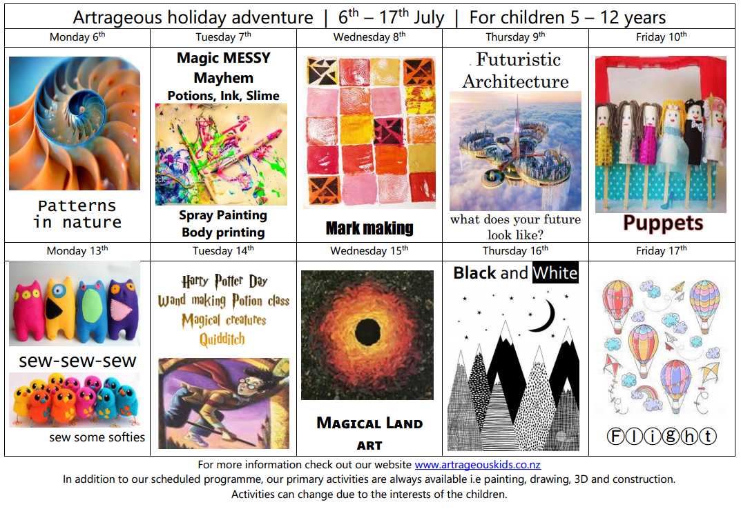 This programme are packed with activities to entertain and inspire children. We have some exciting days planned: Rainbow Day, Cartoon Day, Crazy Day plus some exciting trip days to Island Bay Marine Centre, Space Place, Wgtn Museum plus we are going to the see the movie Trolls 2!