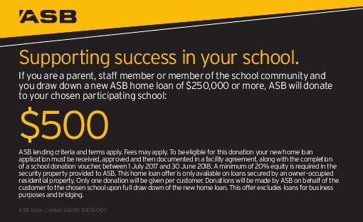 ASB is offering to donate $500 to our school for each parent, staff member, or member of the school community who draws down a new home loan of $250,000 or more.