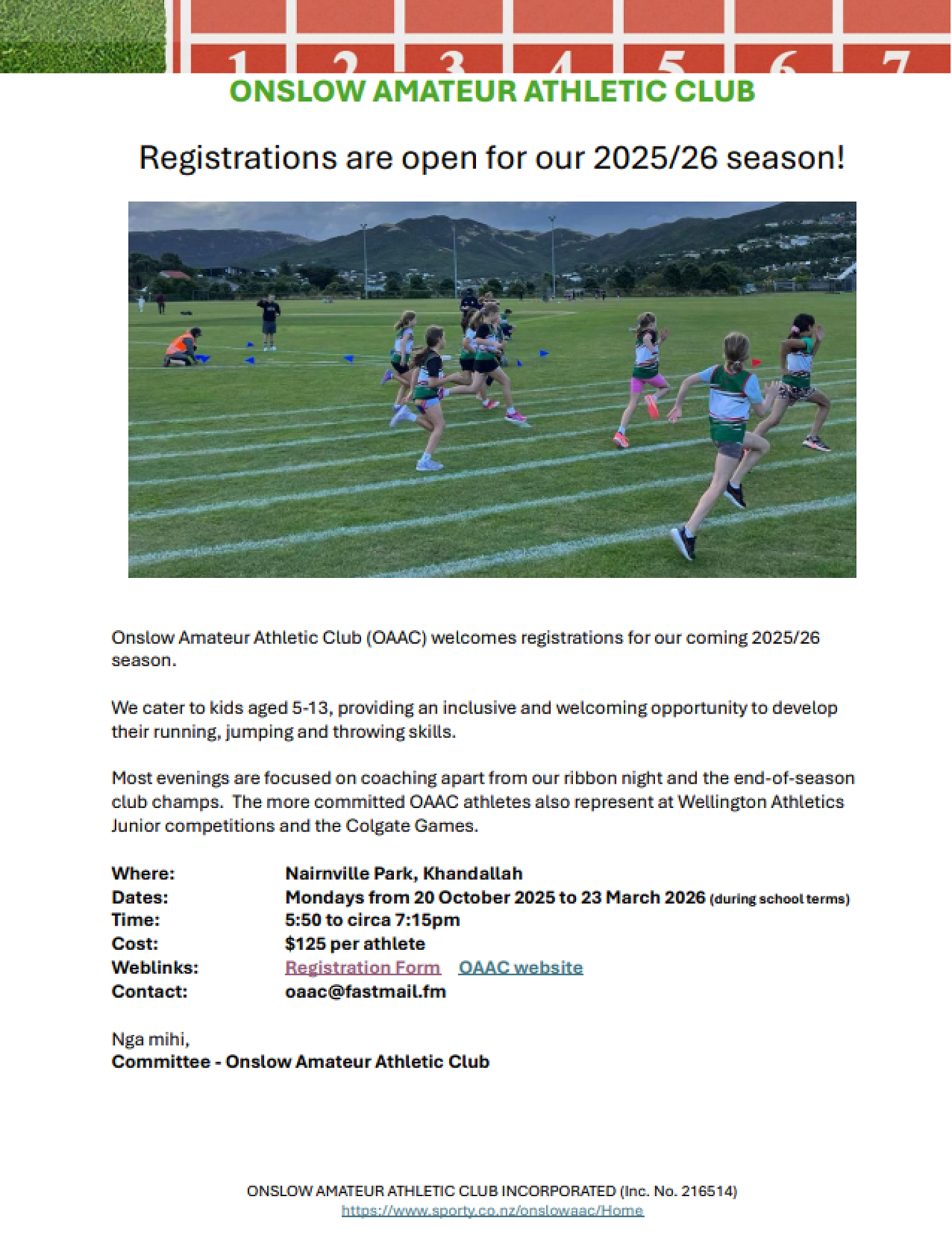 Onslow Junior Athletics Registrations