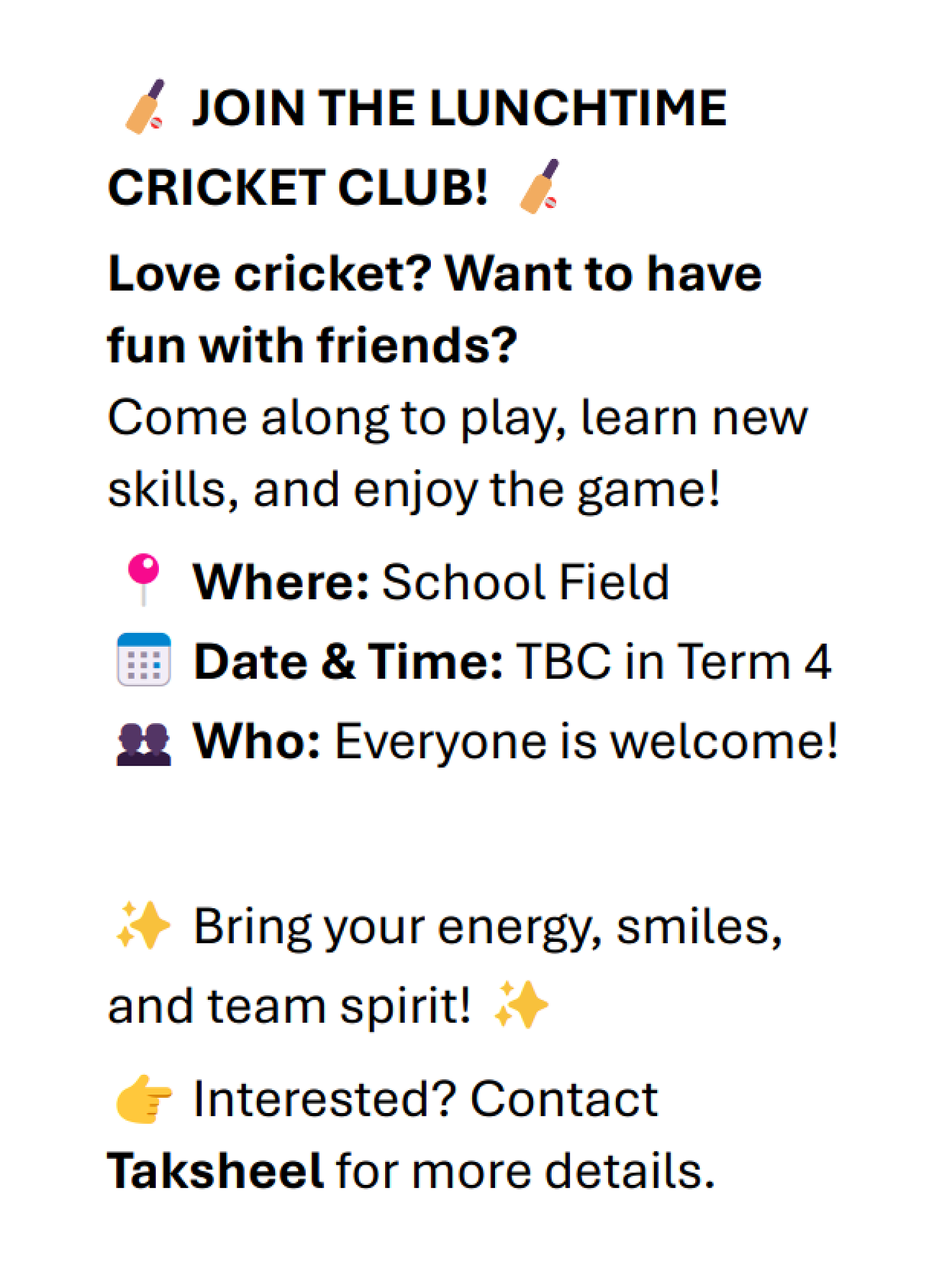 Lunchtime Cricket at School in Term 4?