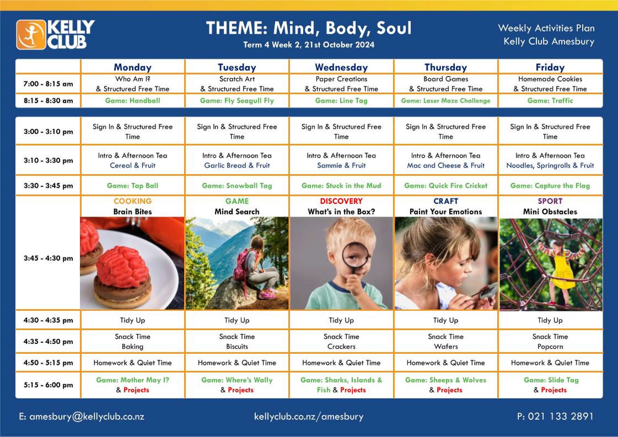Get ready for a week of balance and fun with our Mind Body Soul theme! We’ll be sharpening our minds with brain bites, expressing ourselves by painting emotions, exploring surprises in "What's in the Box," and taking on mini obstacle challenges. Join us for a mindful adventure!
