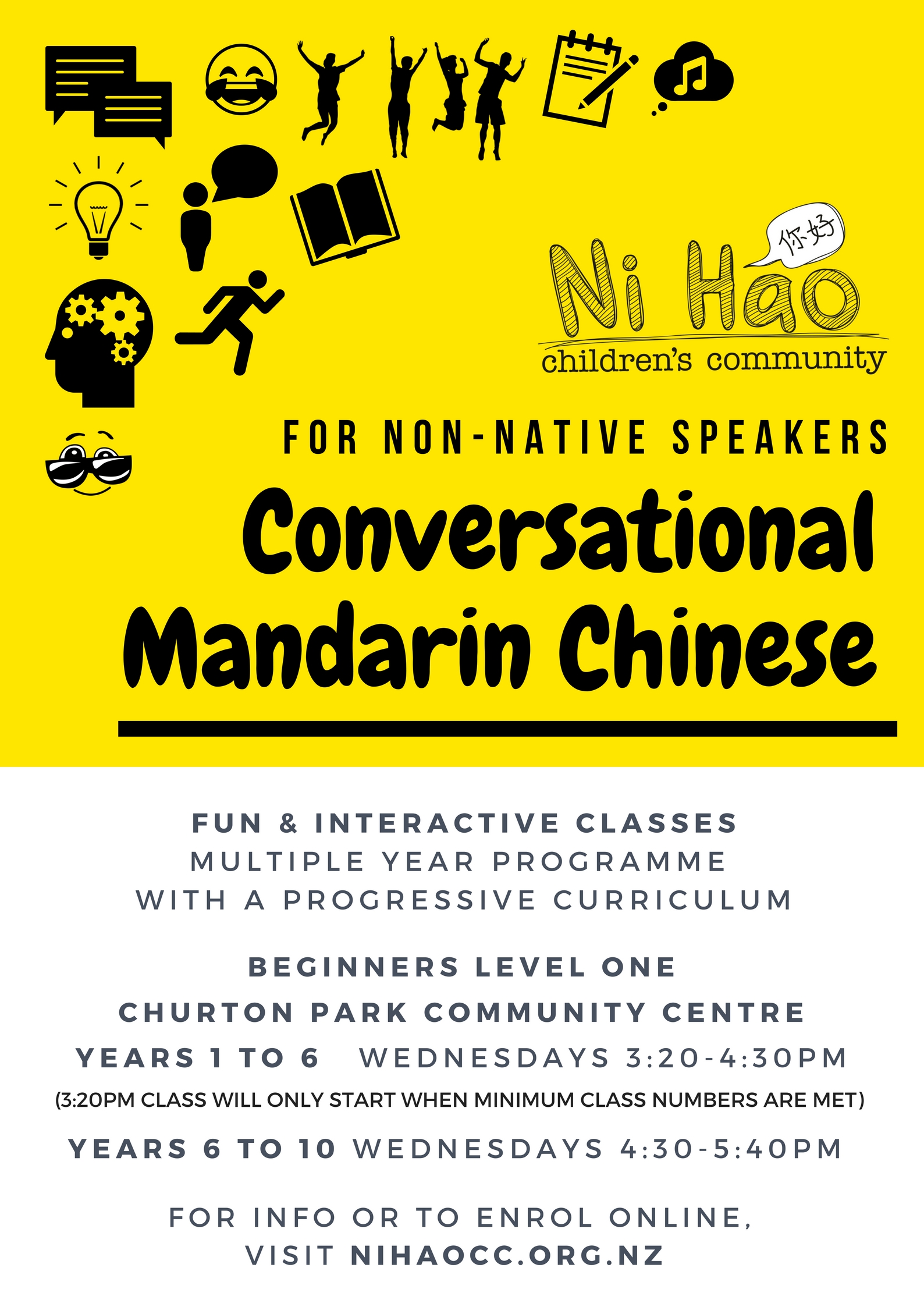 Interested in learning Mandarin? Please see the attached flyer for classes that are being taught at Churton Park Community Centre.