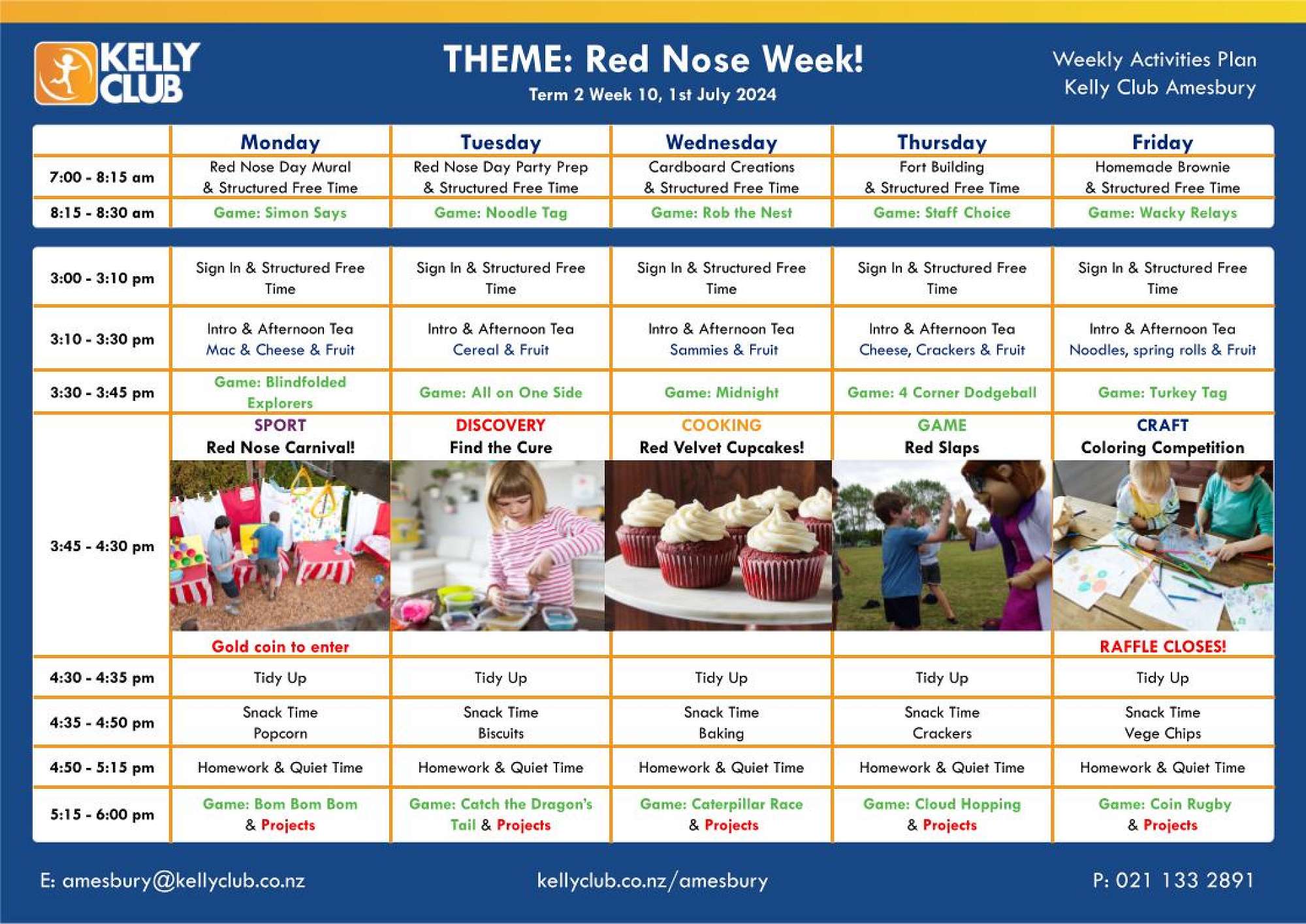 This coming week is the last week of the term!Come join us for Red Nose Week, where we will have fun while raising money for Cure Kids! We will be playing games, baking cupcakes, finding cures, and so much more!