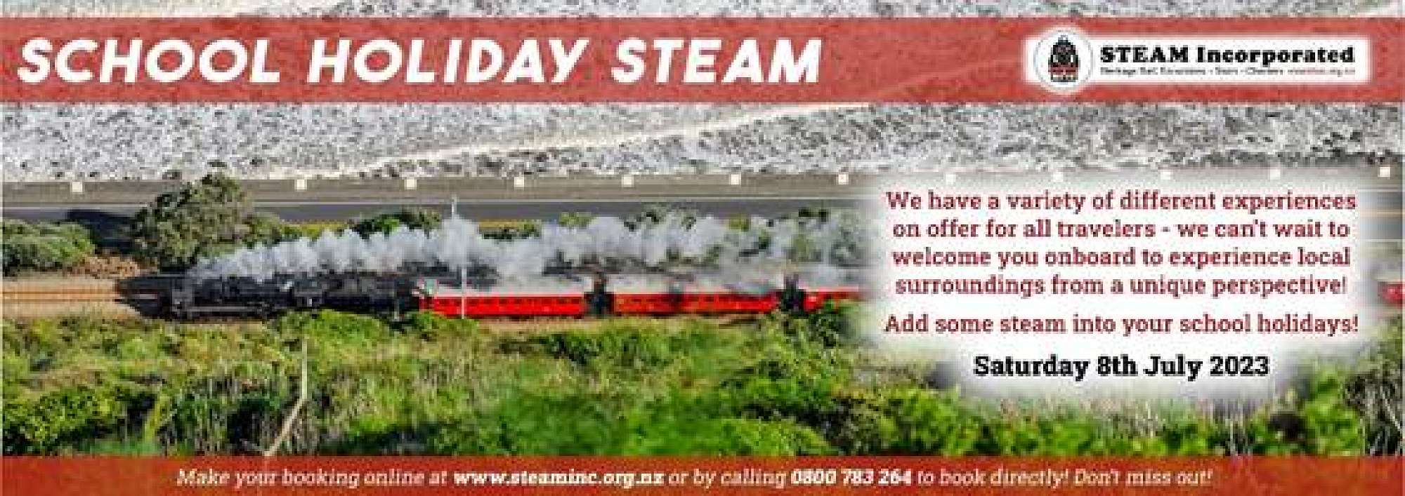 All details are here: https://steaminc.org.nz/book-train-trip/school-holiday-steam/