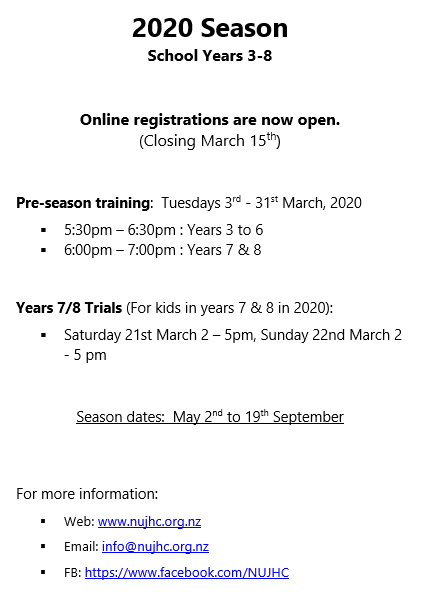 The Northern United Junior Hockey Club is open for registrations until 15 March for the 2020 season: