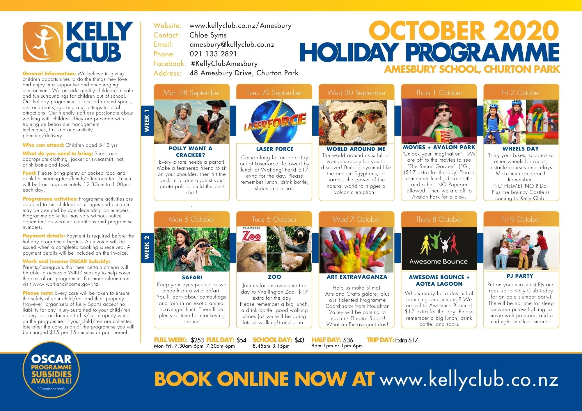 To assist with something for the kids to do Kelly Club is running a one day Holiday Programme at Amesbury for the Teacher Only Day and they would love to invite you all to join them!