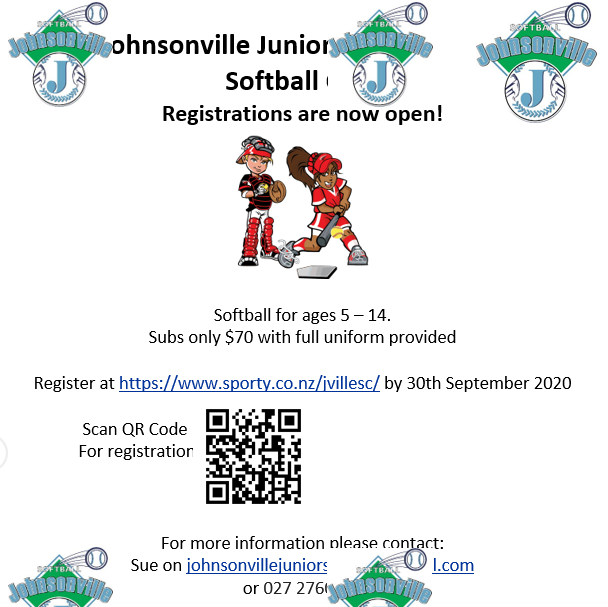 Contact details johnsonvillejuniorsoftball@gmail.com, Facebook, or phone Sue on 0272760644.