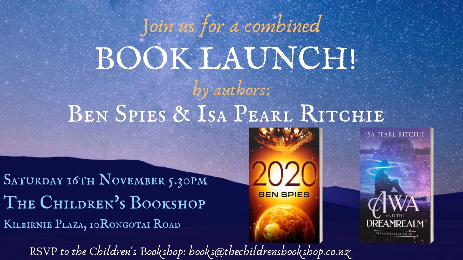 If you are interested in children's books written by children, take the opportunity to attend a book launch at 5.30pm on Saturday 16 November at The Children's Bookshop in Kilbirnie. See the flyer below.