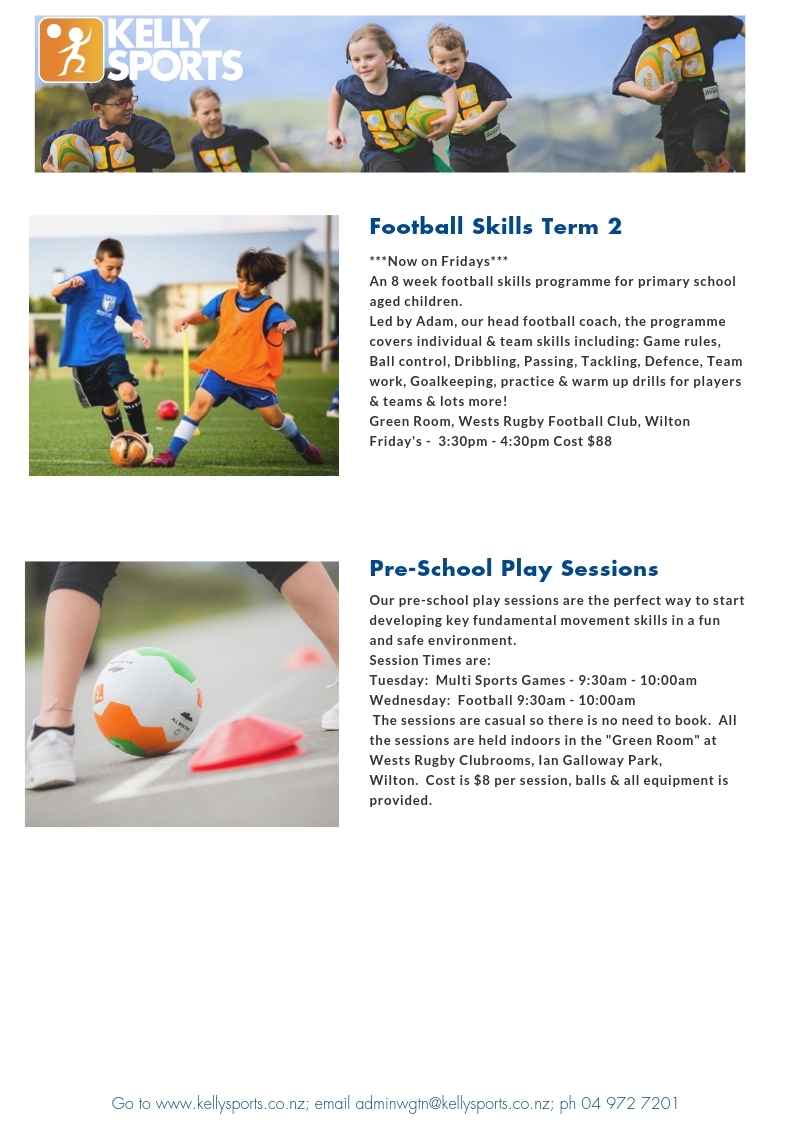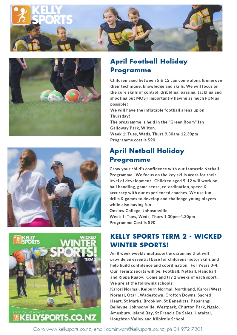 For full details and to enrol into our programmes visit www.kellysports.co.nz email adminwgtn@kellysports.co.nz or call 04 972 7201.