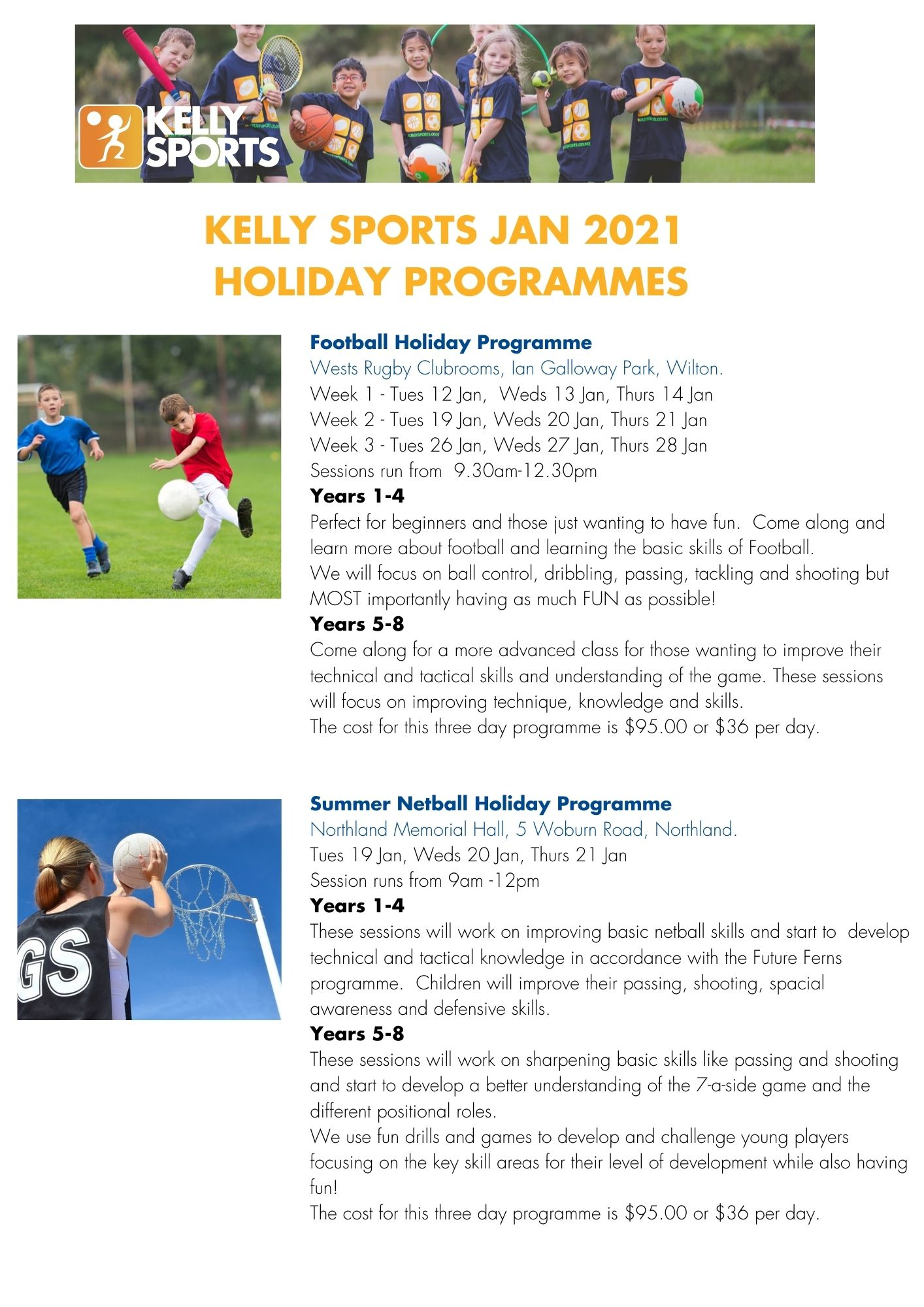 For full details and to enrol into our programmes visit www.kellysports.co.nz email adminwgtn@kellysports.co.nz or call 04 972 7201.