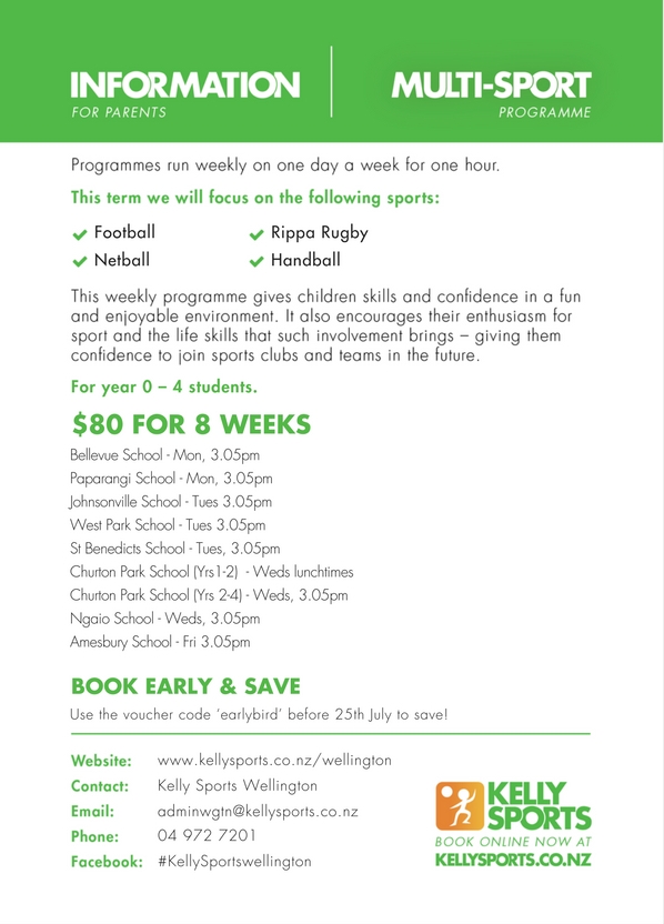 For full details and to enrol into our programmes visit www.kellysports.co.nz or email adminwgtn@kellysports.co.nz or call 04 972 7201.