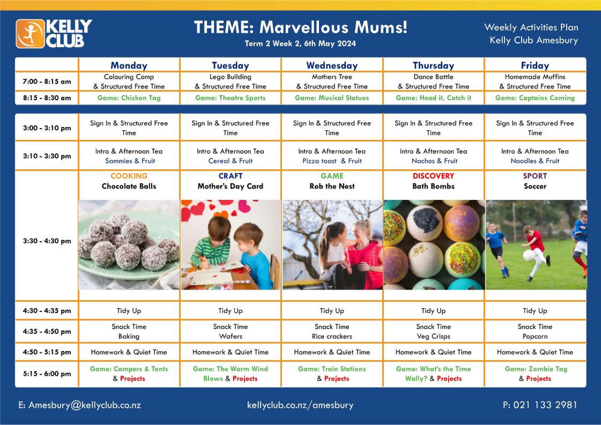 Join us while we make chocolate balls, special cards, make bath bombs and play games! It will be a week to remember.