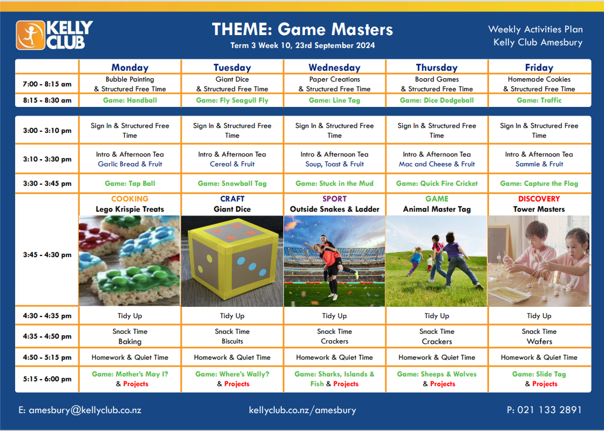This coming week step into the ultimate game zone with our Game Master theme! We’ll be making delicious Lego Krispie treats, crafting giant dice, and challenging each other in Tower Master. It’s going to be a fun-filled adventure for all the game lovers out there!