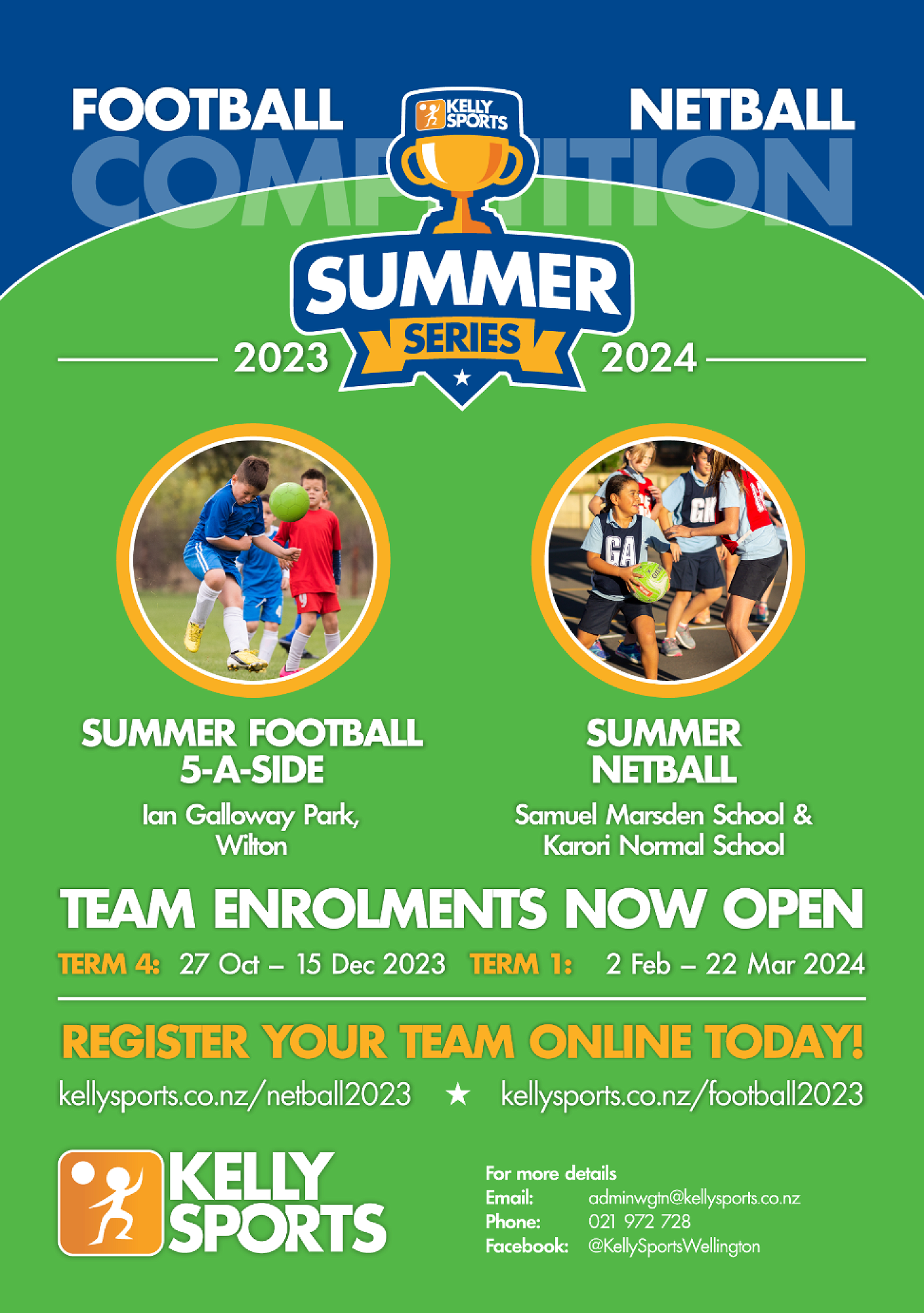 Get your friends/teams together and enrol for the Kelly Sports Summer Series Football or Netball!!
