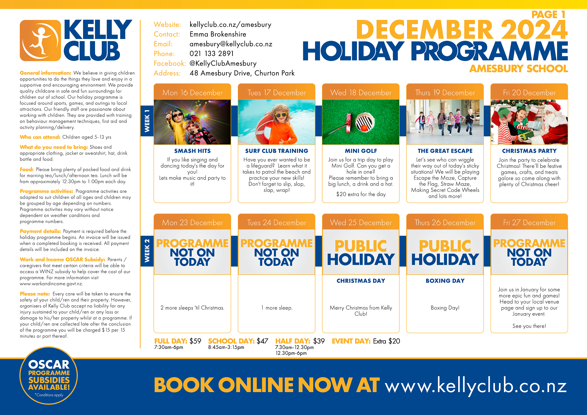 And join in Kelly Club's pre Christmas Holiday Programme: