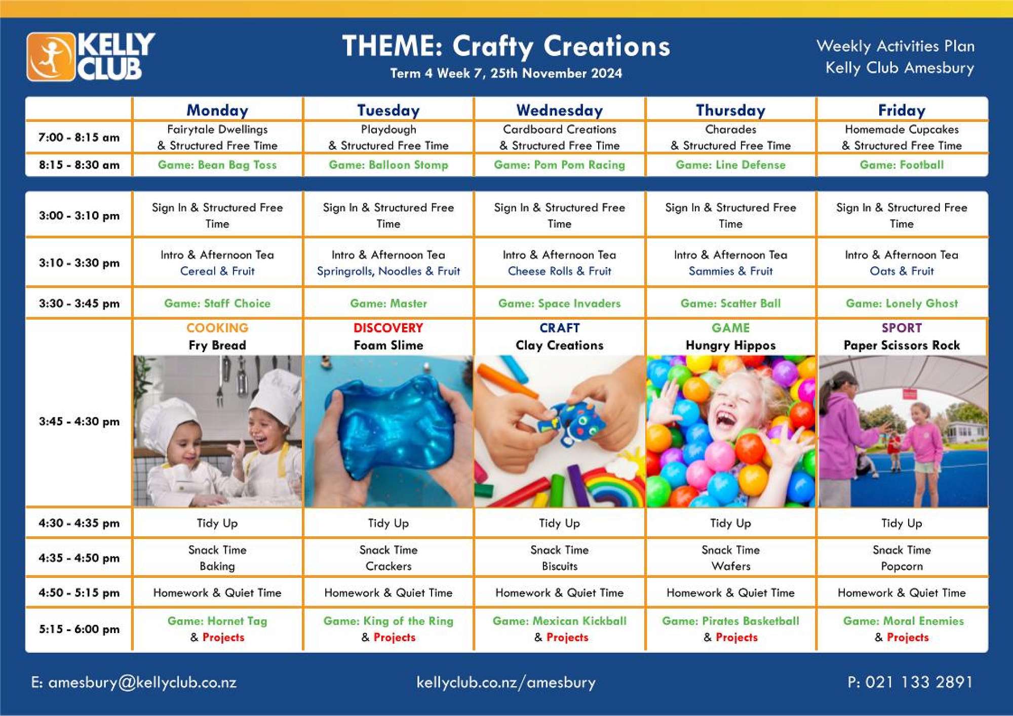 Join us for a week packed with creativity, fun, and hands-on activities! Make your own tasty fry bread, get messy and creative with discovery foam slime, mold amazing clay masterpieces, and enjoy exciting games with friends.