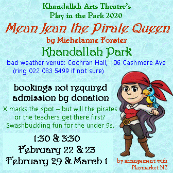 Khandallah Arts Theatre’s annual play in Khandallah Park is on over weekends 22/23 February and 29/1st March at 1.30 and 3.30pm each day.