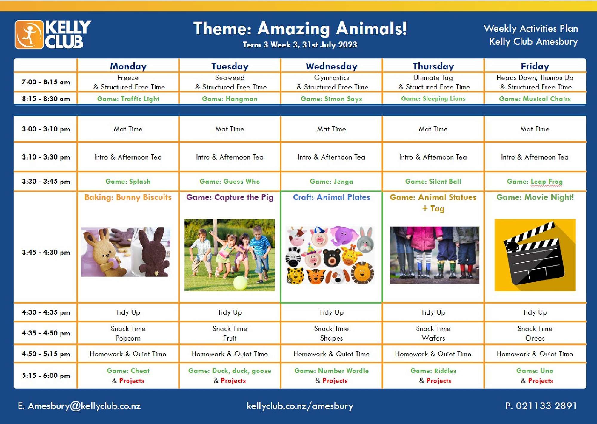 This coming week at Kelly Club is themed ‘Amazing Animals!’ where we will be baking bunny biscuits, playing some games the kids have made, including ‘Animal Statutes’ and ‘Musical Animal Tag.’ We will also be having a very crafty time, making animal plates and will finish off the week with a movie night! - book in through this link to join in the fun! https://kellyclub.co.nz/kelly_events/view/15007.